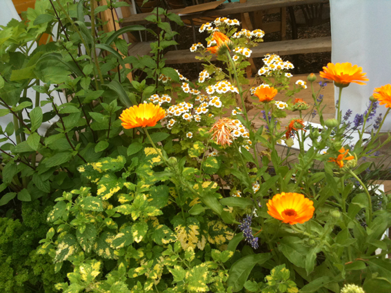The singular bright orange of Calendula, variegated Lemon Balm, Chicory, all the Sages, the Parsleys, Mints, Nettle ….