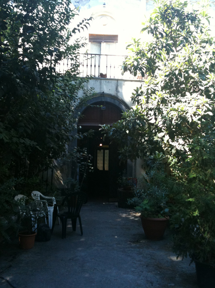 A garden cafe restaurant. A path up the centre of a courtyard with tables and chairs under the trees, the front of an ancient villa just visible through the garden. Dense thick, fat with foliage, tumbling plant pots and containers, loose, loose gardening to the best extent. A gem, a golden moment. These photos taken in haste don’t do it justice, but hopefully my words will.
