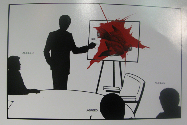 “It is an itinerant museum in three parts: the safety gear collection, the multi-media programme, and the publishing house. Central to the museum’s collection are 19 pieces of scale model safety and rescue gear.” (Museum Show Guide for Safety Gear for Small Animals, Arnolfini 2011)