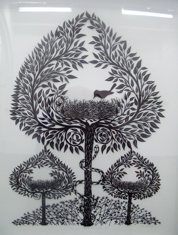 A golden eagle in a children’s iron bedstead, owls tucked in, birds of all kinds, and above each one a ‘plaque’ with chalk on slate giving some details with a drawing. To see such awareness and detailed work was extraordinarily moving – I tiptoed around barely breathing, wide-eyed.