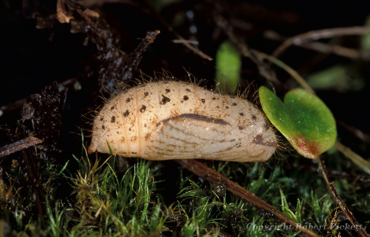 Duke of Burgundy Fritillary Butterfly, Hamearis lucina, pupae or chrysalis in moss, cocoon United Kingdom